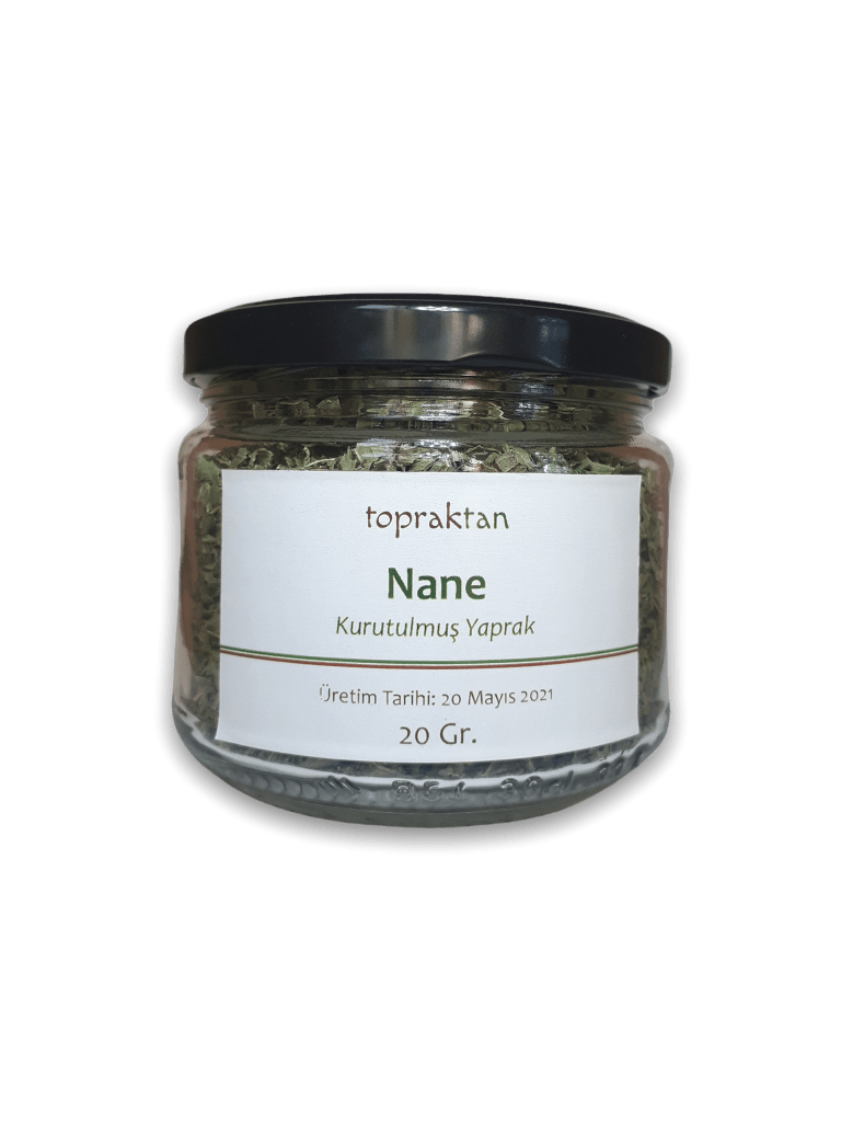 Kurutma tezgahlarımızda 7- 8 gün kuruttuğumuz yaprakları 330 ml’lik kavanozlara dolduruyoruz. Her kavanoz 25 gr kurutulmuş nane alıyor.